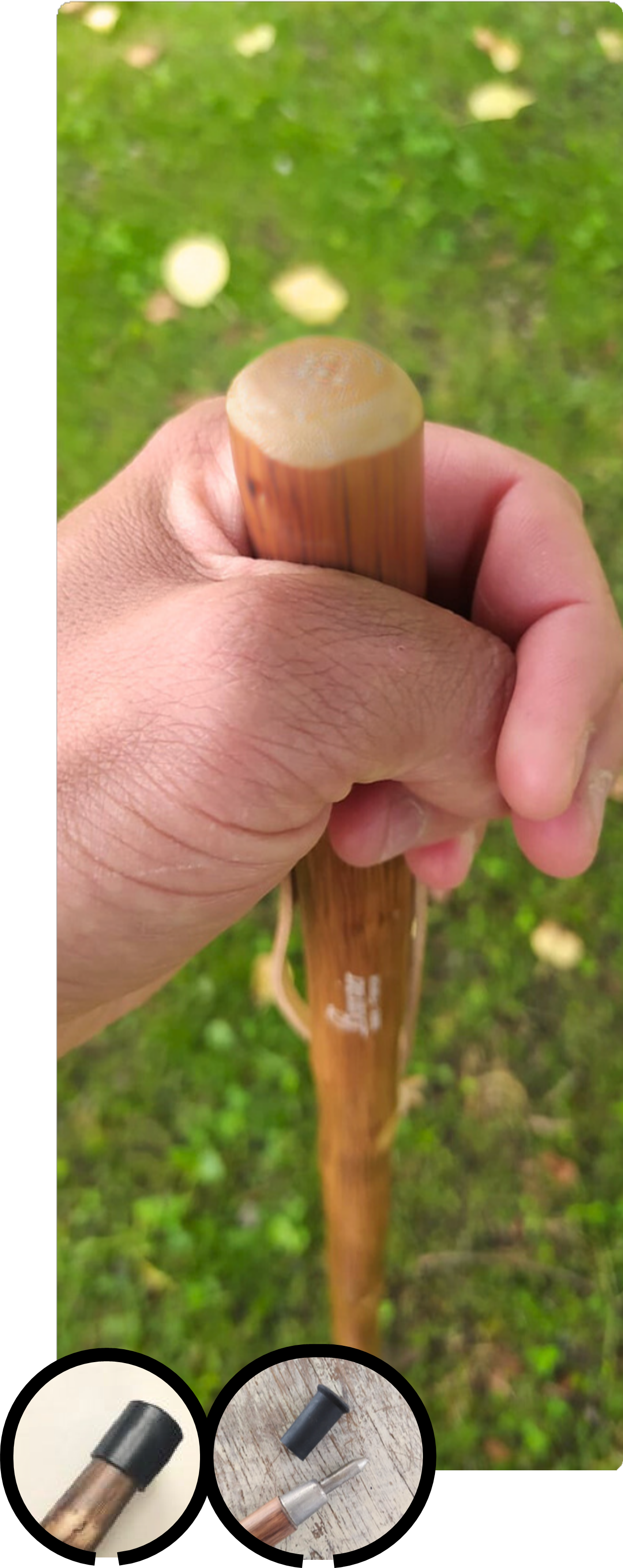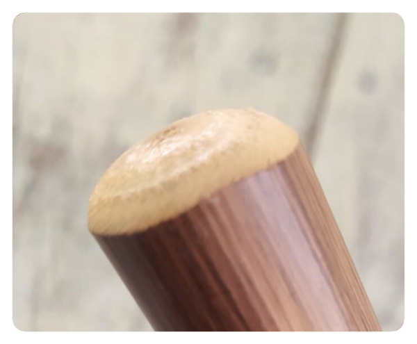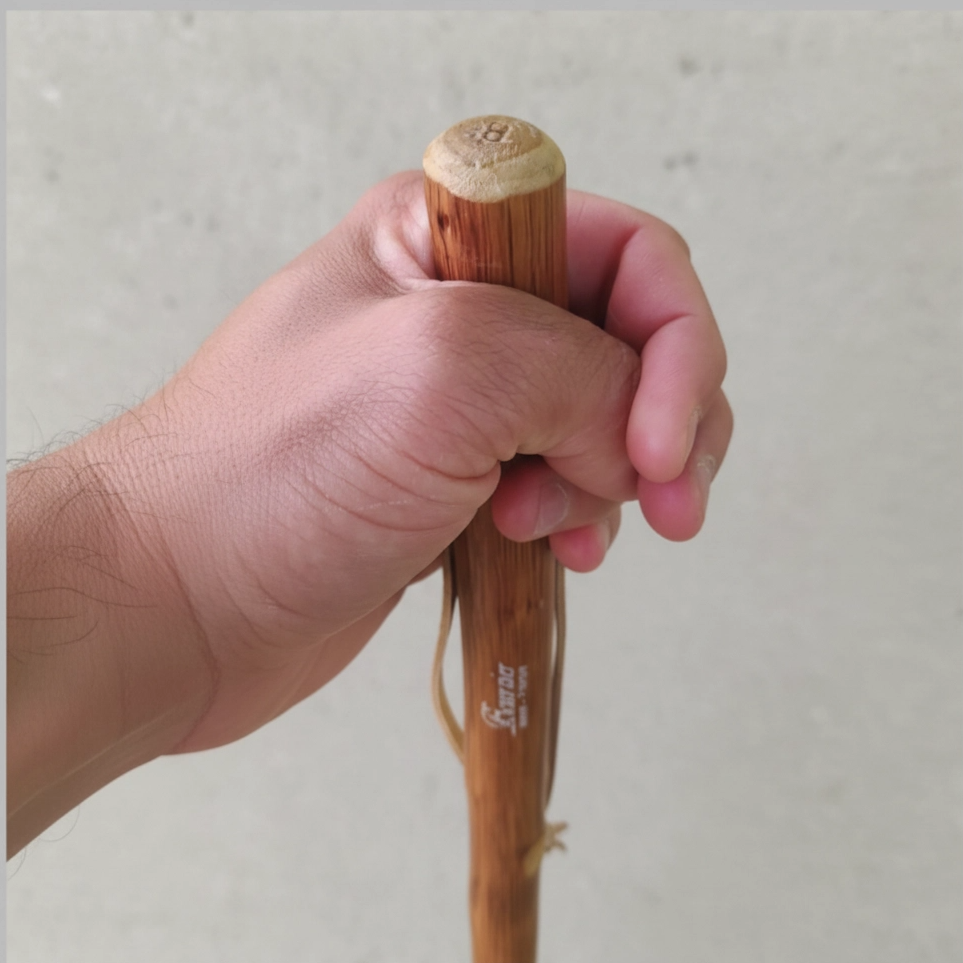 Ce bâton conserve l’âme du modèle classique, avec une touche de finition : Le bois est brûlé au chalumeau, puis verni, offrant une protection supplémentaire et un aspect légèrement patiné, tout en mettant en valeur le veinage naturel.
