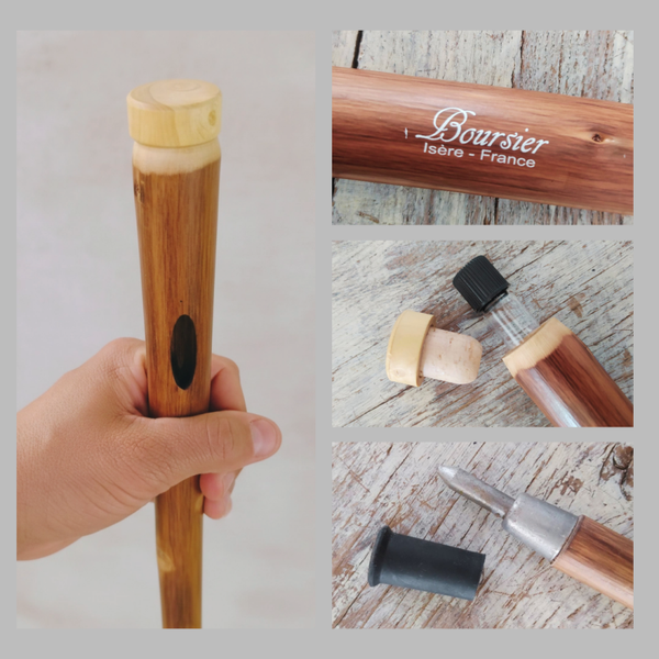 Alliant praticité et originalité, ce bâton dissimule une réserve d’alcool intégrée, idéale pour partager un moment convivial au cœur de vos balades.